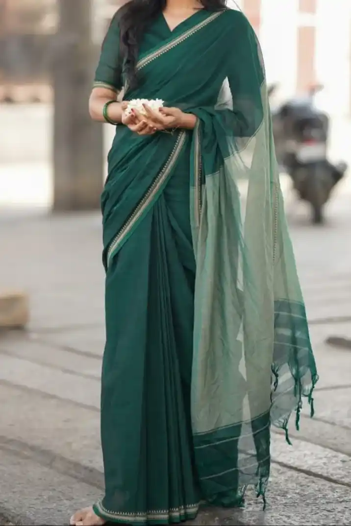 Botlle Green Narayanpet Pure Cotton saree
