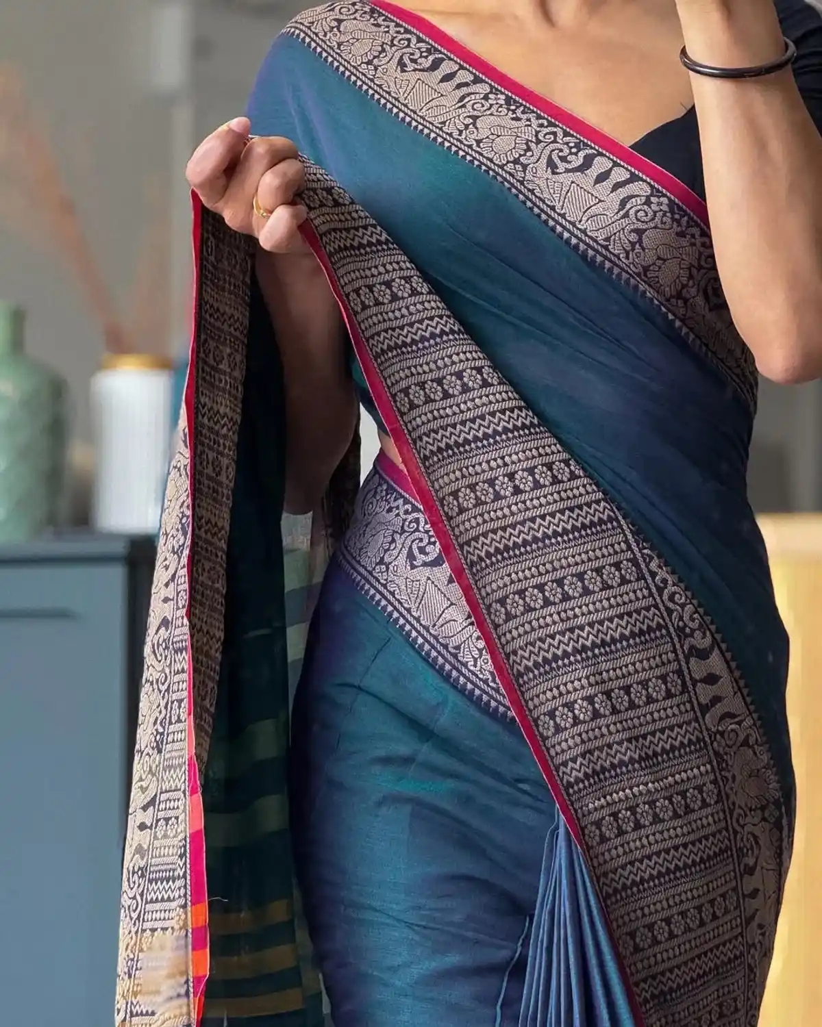 RaMa Blue Big Border Narayanpet Pure Cotton Saree