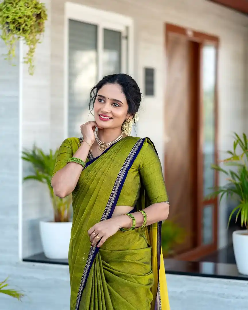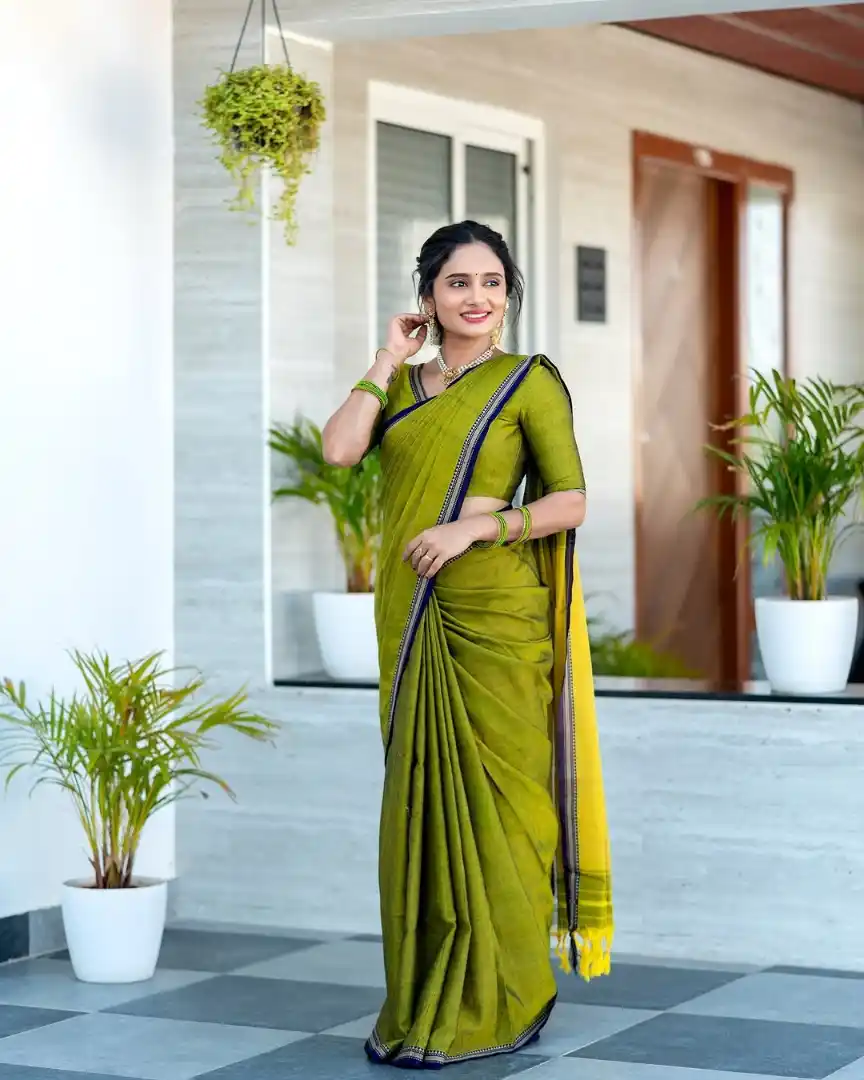 Mehandi Pure Cotton Premium & Elegant Saree With Running Blouse For Women